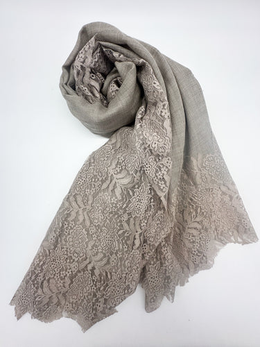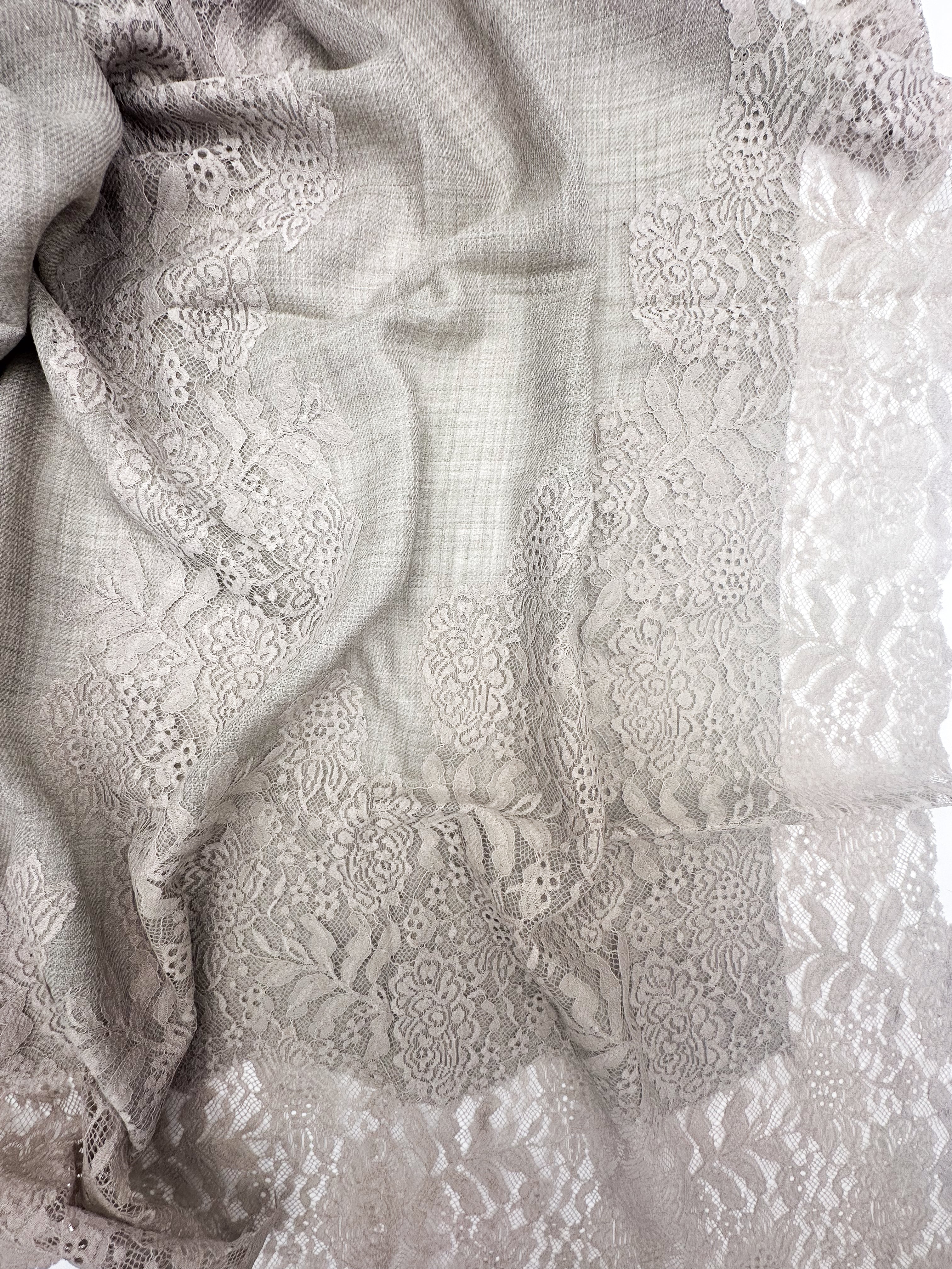 Premium quality scarf 100% cashmere! Large-sized luxurious scarf with French lace, perfect to pair with a coat or an elegant slip dress for special occasions.